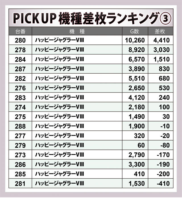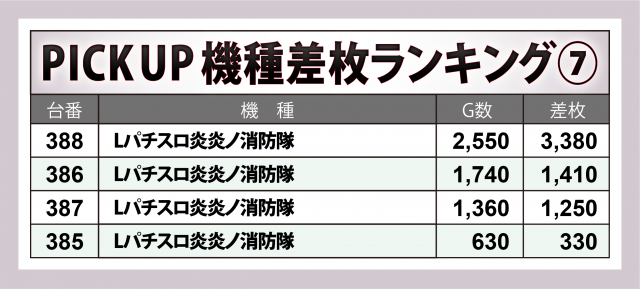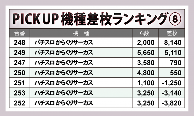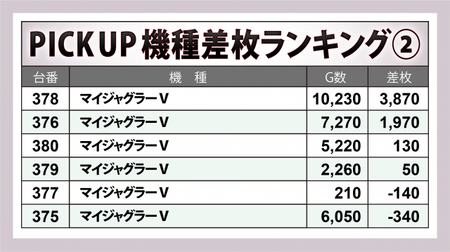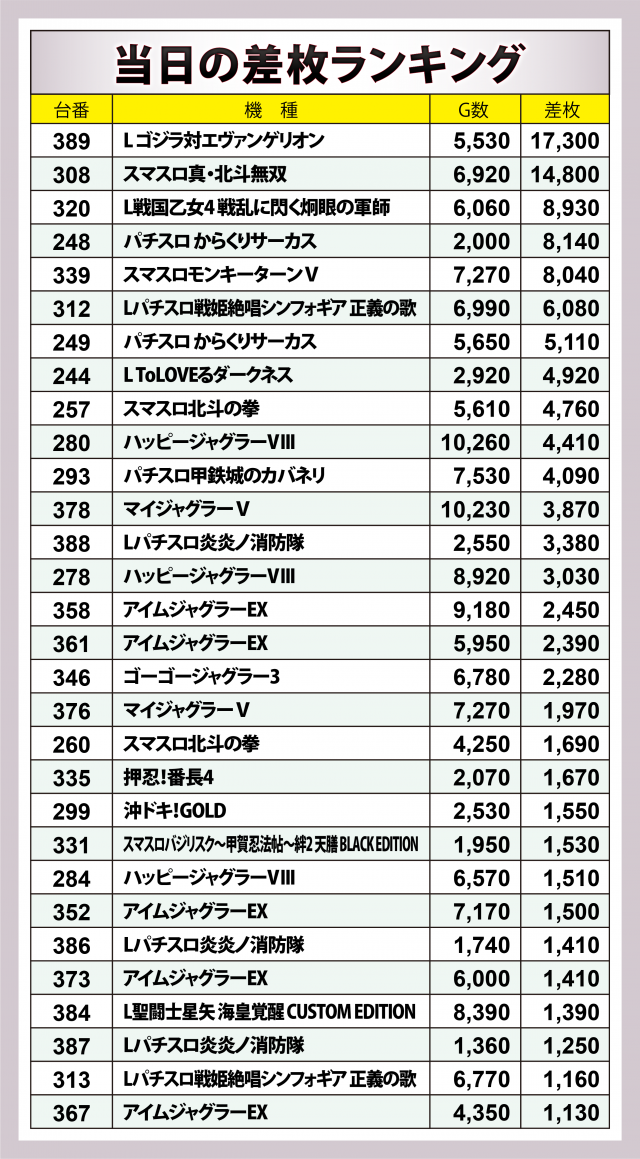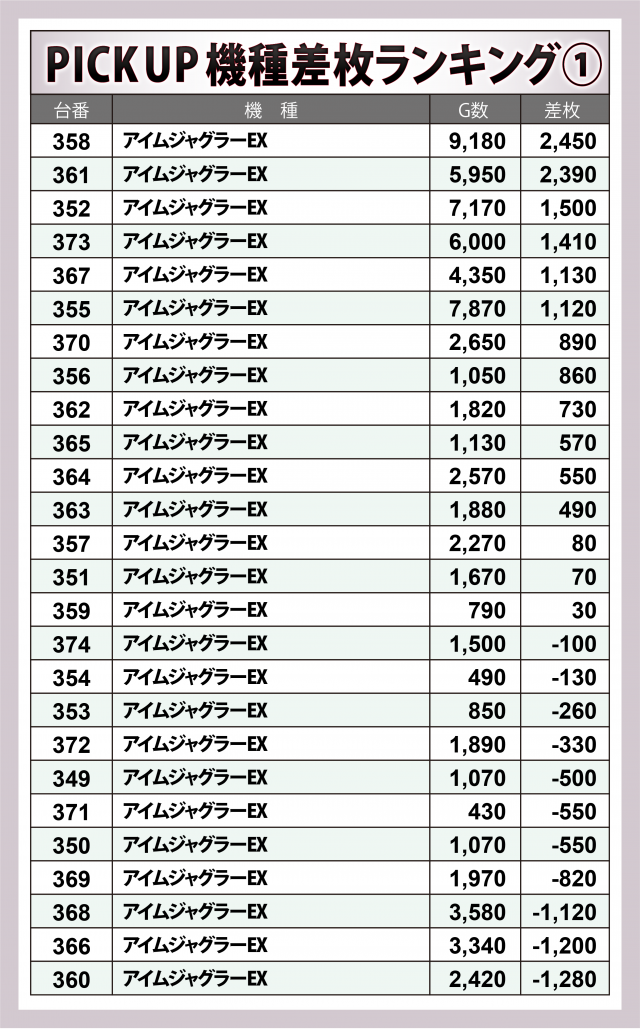 ※差枚数順に掲載しています。