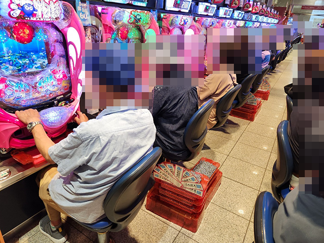15時をまわった頃は8割稼働となっており、1箱以上の持ち玉を使って遊技をおこなっている姿があった。
