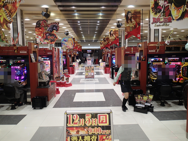 すべてのシマにシャッターをきるべきタイミングが存在。華やかなパフォーマンスを披露する姿がみられた。「マルハン宮町店」の一面はパチスロコーナーで決まりだろう。