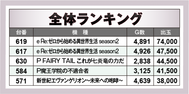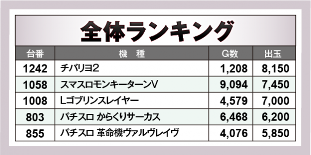 ※出玉数順に掲載しています
