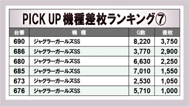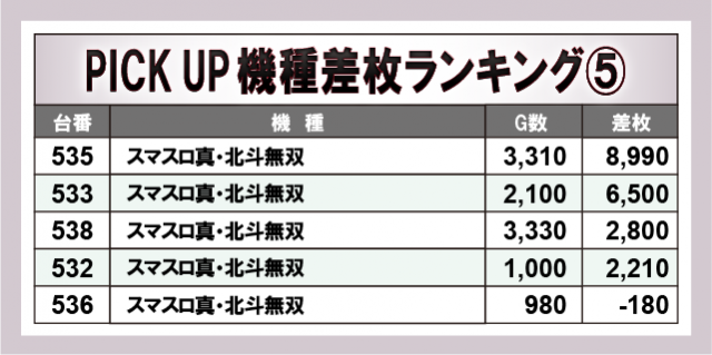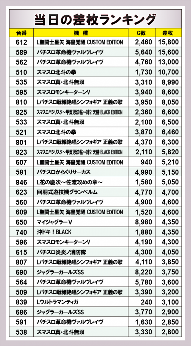 ※差枚数順に掲載しています。