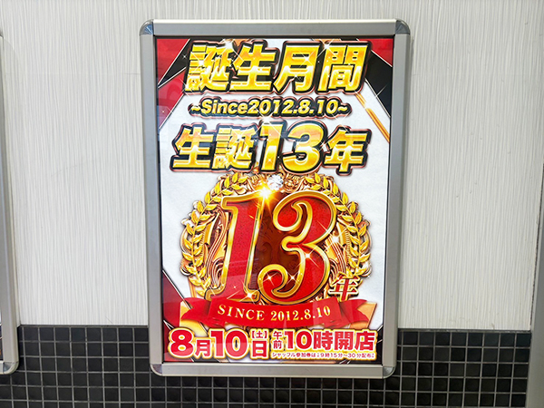 当日は店舗の内外に「13周年」をお祝いするポスターや看板等があふれていて、一段とユーザーの熱気が高まっているように感じられた。