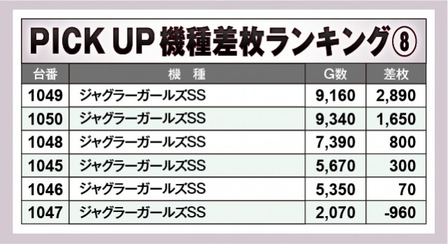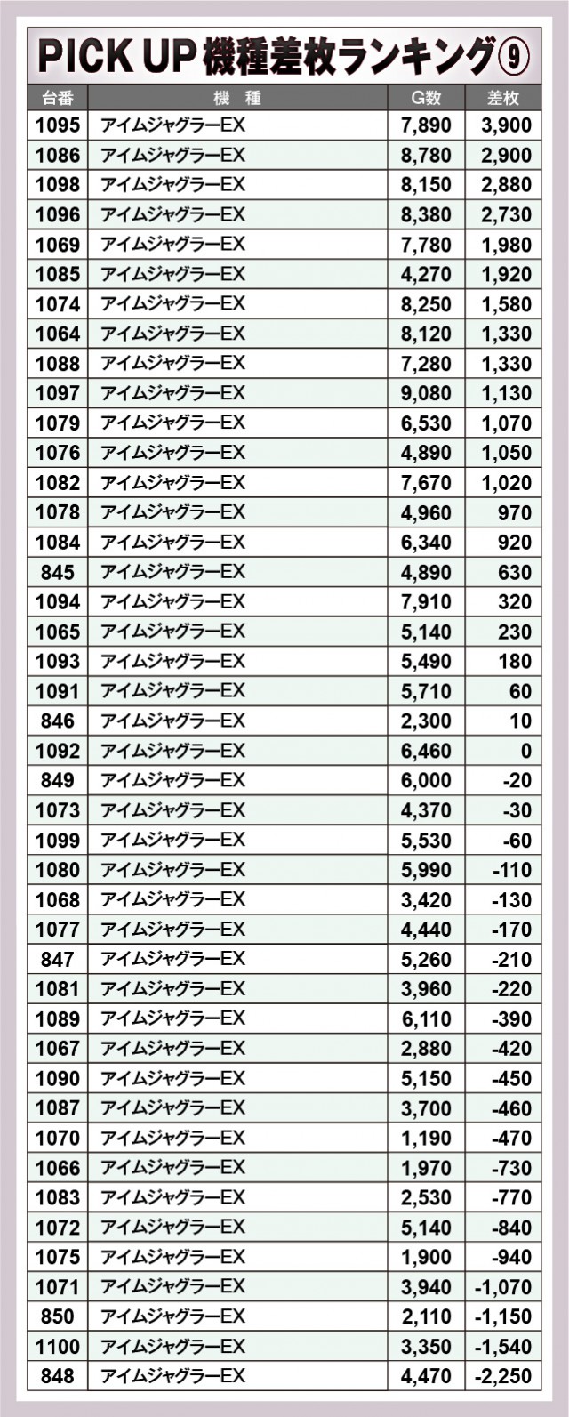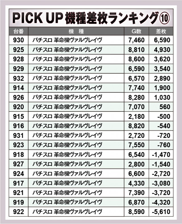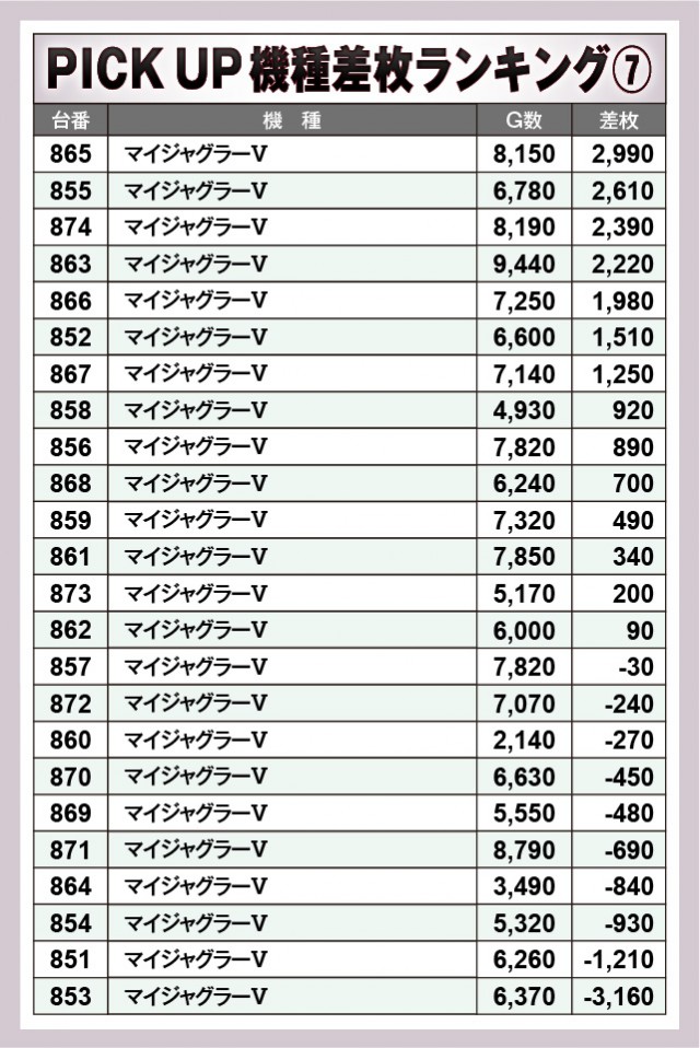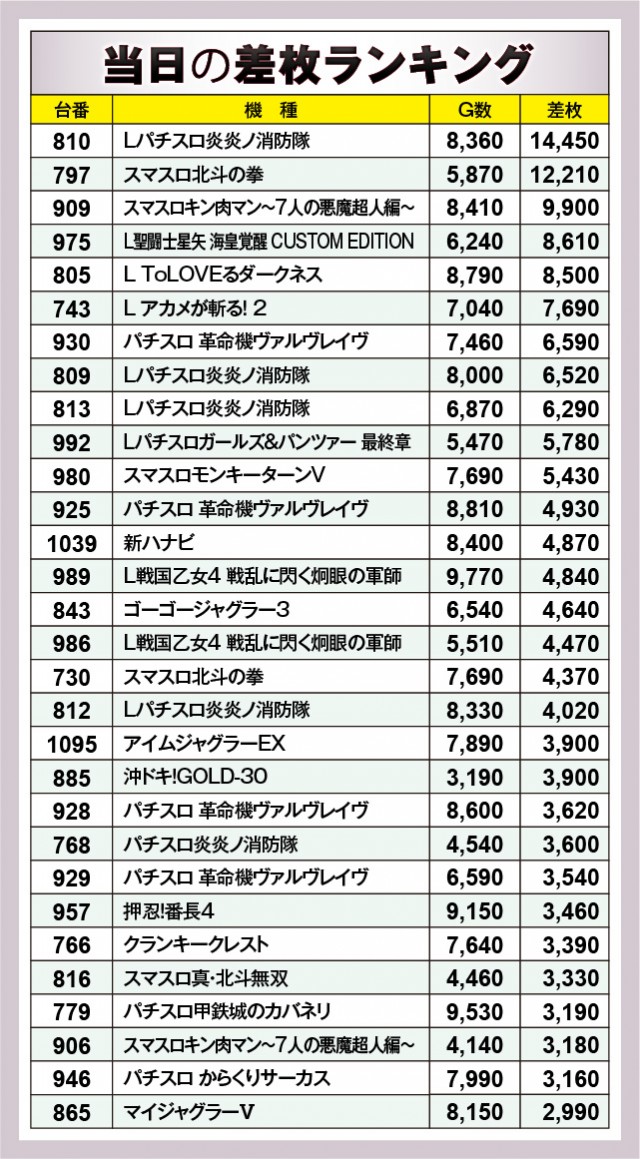 ※差枚数順に掲載しています。