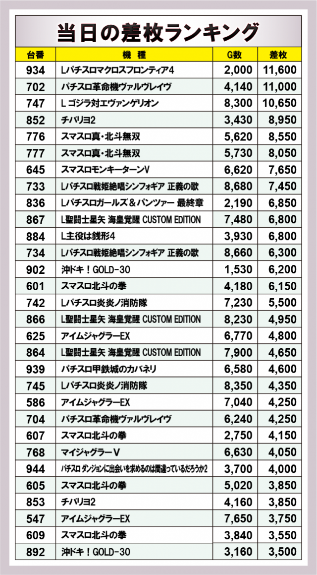 ※差枚数順に掲載しています。