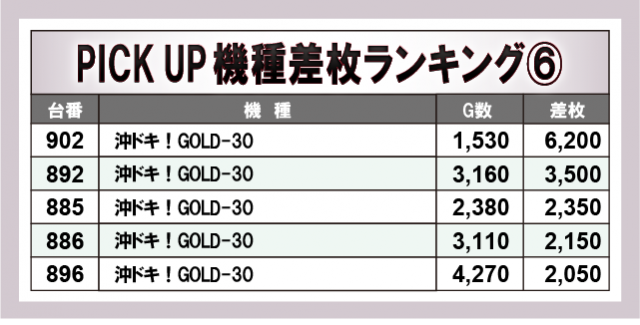 当日、特に盛り上がっていたのが上表の6機種だ。最新台や定番機種、メダル機までしっかりとポテンシャルを解放していた様子で、まとまった出玉を獲得したファンは口角を緩めながらレバーを叩いていたはずだ。
