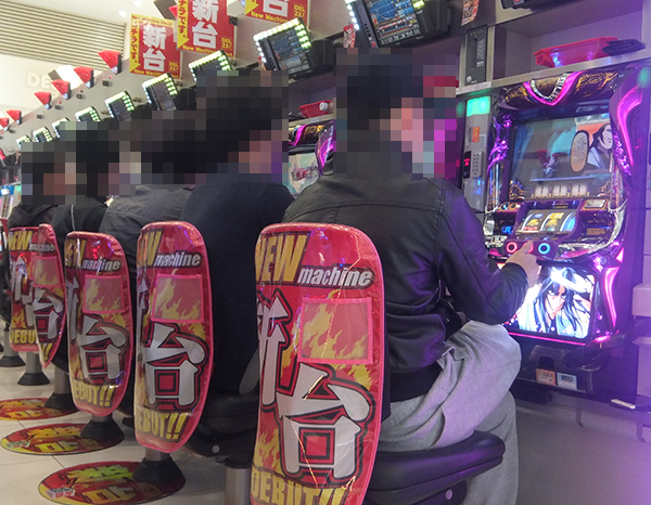 4円パチンコにおいて、ひときわにぎわっていたのが「CRスーパー海物語IN沖縄4」。多くのプレイヤーが笑顔で遊技をおこなっており、シマ全体が明るい雰囲気に包まれていた。