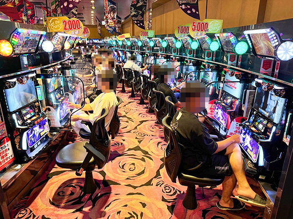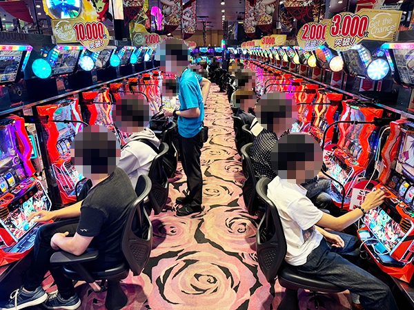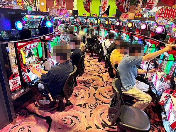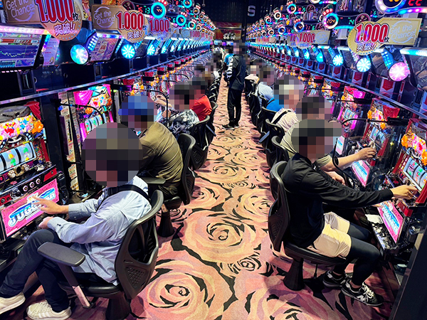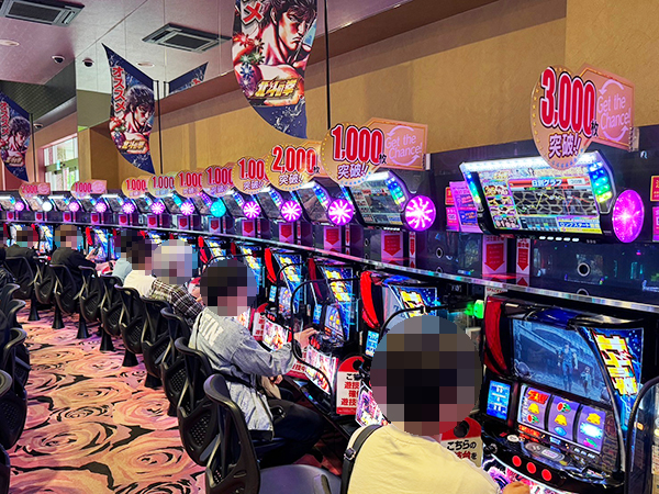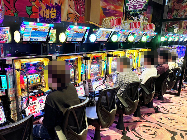 1000円/176枚パチスロの様子をうかがうと、様々な機種で楽しそうにレバーを叩くプレイヤーが見受けられた。