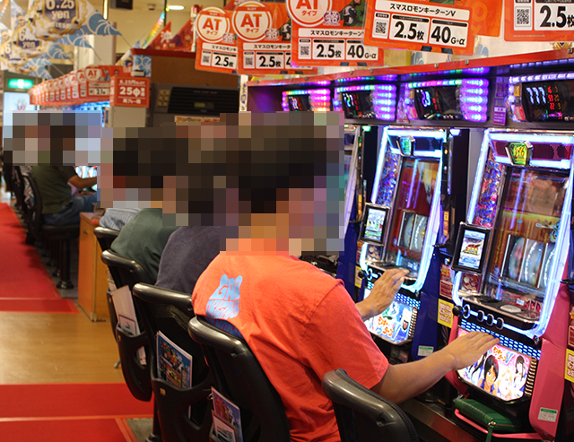 15時過ぎのパチスロでは、沖スロが大人気となっていた。