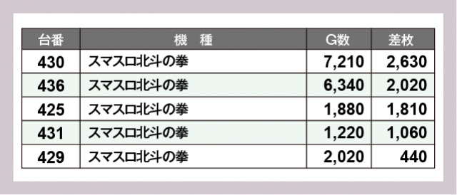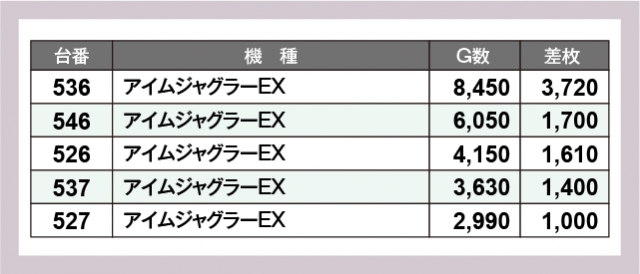 ※差枚数順に掲載しています