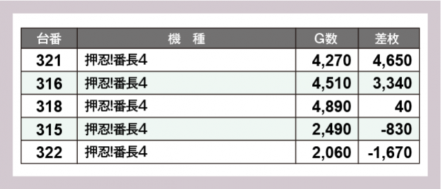 ※差枚数順に掲載しています