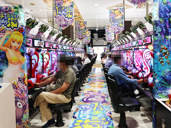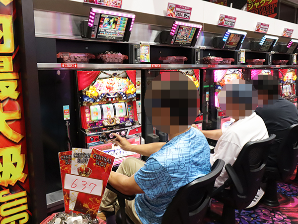 取材時は既に多くのプレイヤーであふれており、パチンコ・パチスロを問わず楽しげな表情でいっぱいだった。