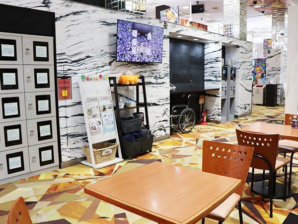同店には広々としたレストスペースも完備されており、テレビを見ながらのんびりと休息をとることができる。