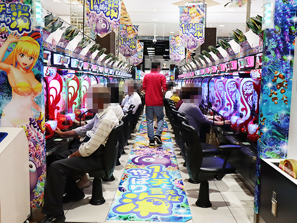 店内では貸し玉料金を問わず様々な機種で、心ゆくまで楽しむプレイヤーの姿が見られた。