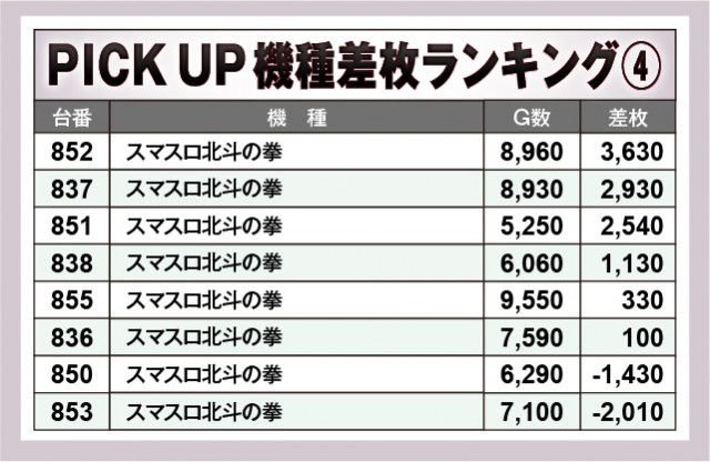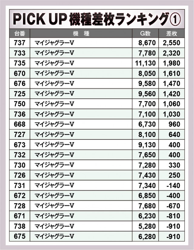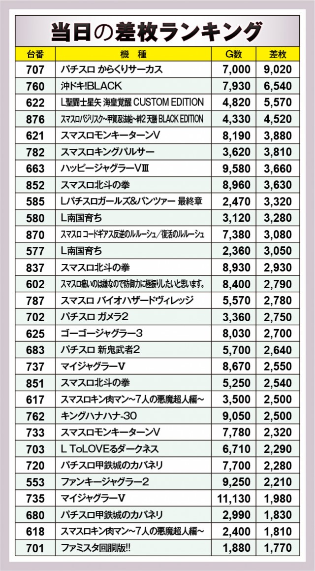 ※差枚数順に掲載しています。