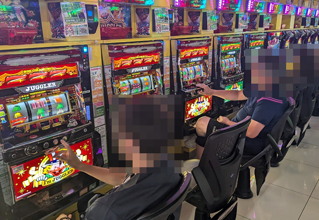 「アイムジャグラーEX」でも、持ち玉を使い遊技をおこなう姿を目撃。