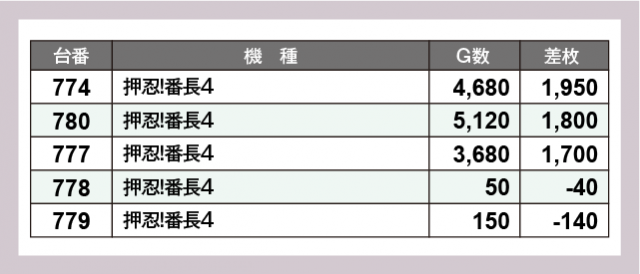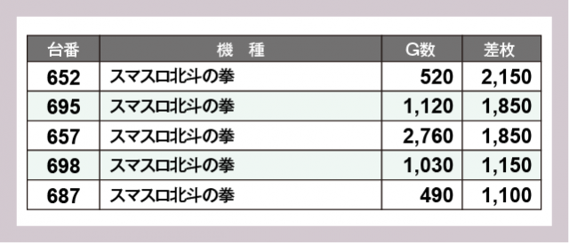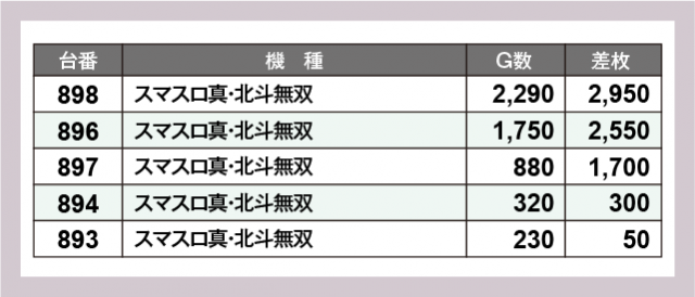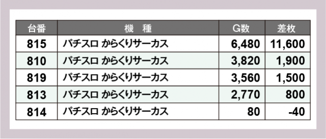 ※差枚数順に掲載しています