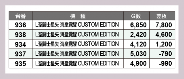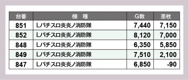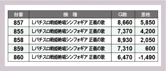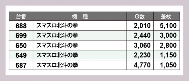 ※差枚数順に掲載しています
