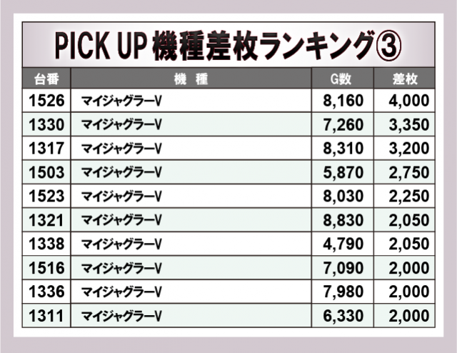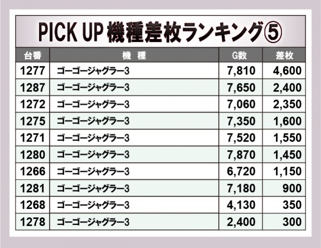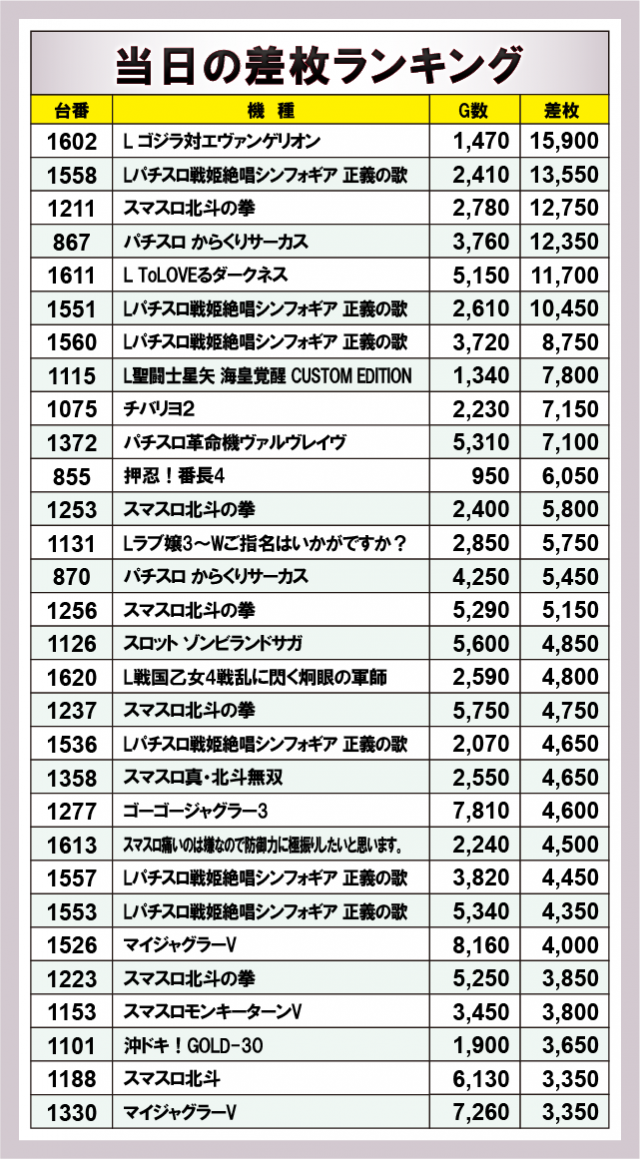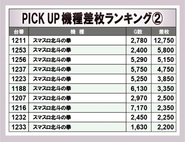 ※差枚数順に掲載しています。