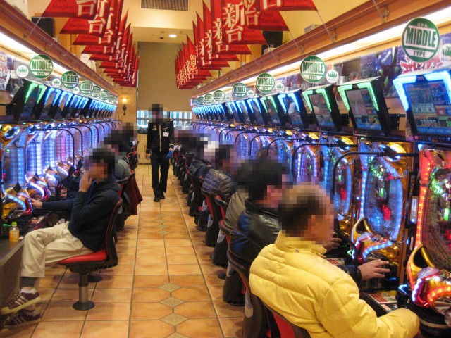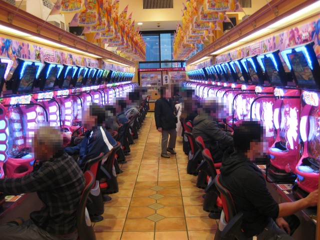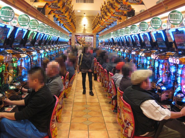 設置台数日本最大級というだけでなく最新台も目白押しのホール。早朝から130名ものプレイヤーが列をつくり、各々好みの台を確保できるか不安と高揚感を抱きながら開店の瞬間を待ち望んでいた。