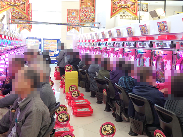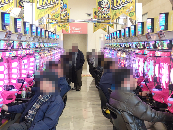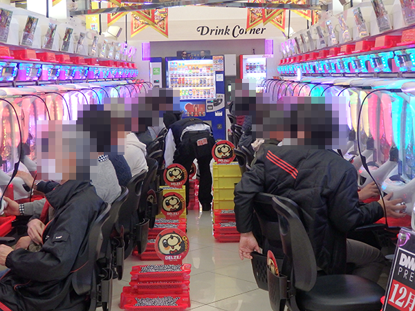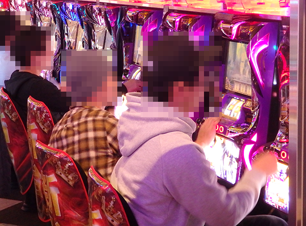 14時頃の20円パチスロでは、「沖ドキ!-30」やハナハナシリーズが大人気。プレイヤーたちのキラキラとした笑顔をみても、有意義な時間を過ごせていると思えた。
