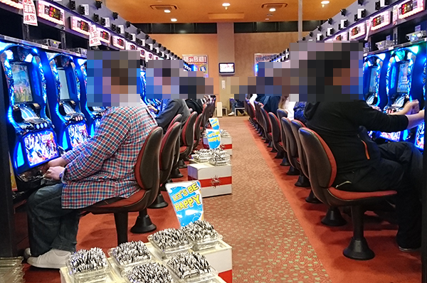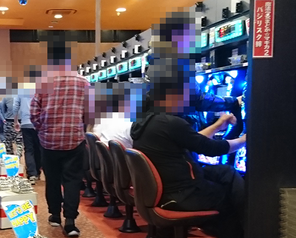 大勢のプレイヤーが来店しており、明るい雰囲気のなかで遊技を楽しんでいた。