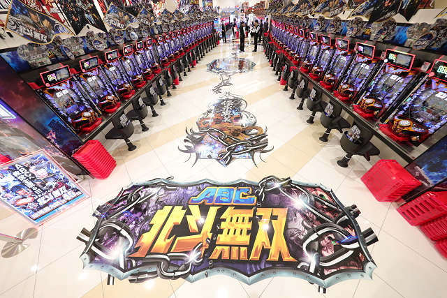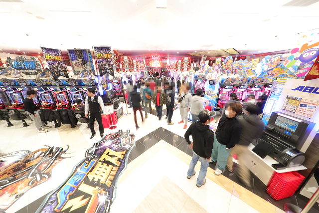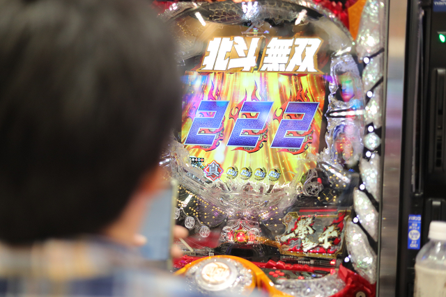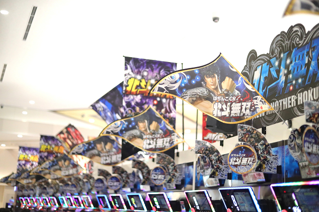 ピッカピッカの店内、真っ先に目に入るのは『ぱちんこCR真・北斗無双』(以下、北斗無双)のコーナーが余裕たっぷりの広さで確保されている!