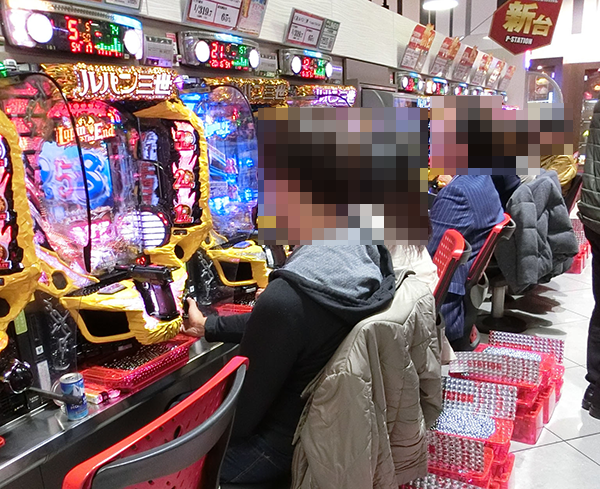 14時半頃のホール内をのぞいてみると、4円パチンコでは「CRヱヴァンゲリヲン~いま、目覚めの時~」や「CRルパン三世~Lupin The End~」がほぼフル稼働。