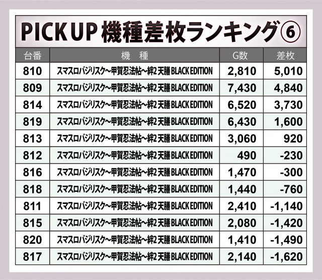 その他、『沖ドキ!BLACK』『スマスロバジリスク~甲賀忍法帖~絆2 天膳 BLACK EDITION』『押忍!番長4』では、+5,000枚クラスが相次いだ。