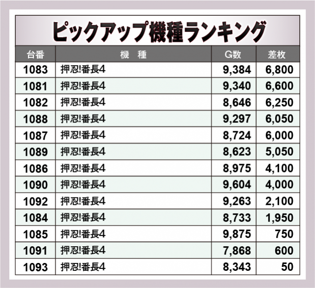 ※出玉数順に掲載しています