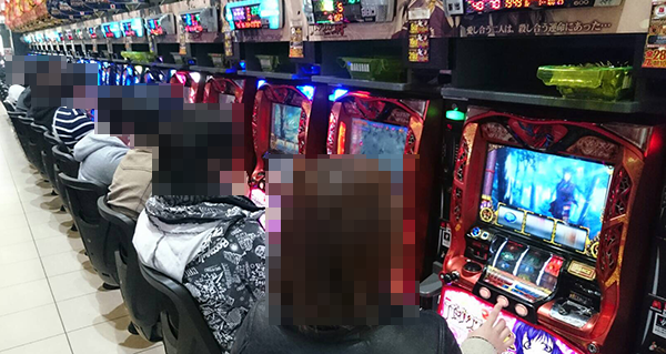 14時を過ぎた頃のパチスロにおいて、とくに活気づいていたのは「パチスロ北斗の拳 転生の章」と「沖ドキ!」。機種の性能を最大限まで引き出しているような光景も印象的であった。