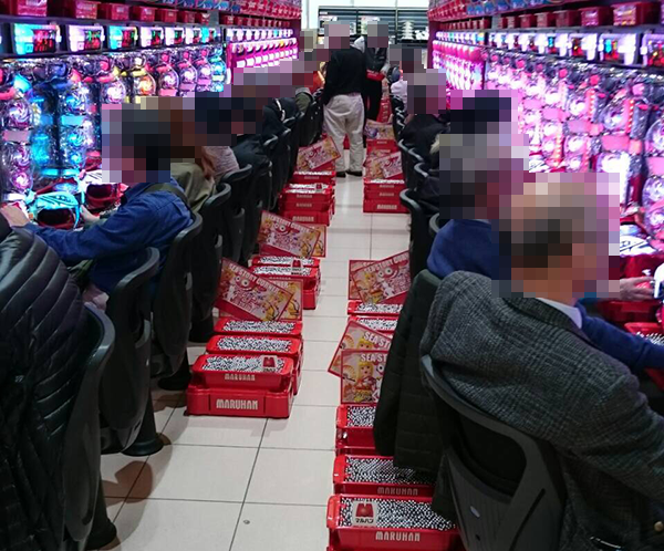 4円パチンコをみると、「CRヱヴァンゲリヲン~いま、目覚めの時~」が大盛況。満席となっているだけでなく、華麗なパフォーマンスを披露しているプレイヤーも多かった。