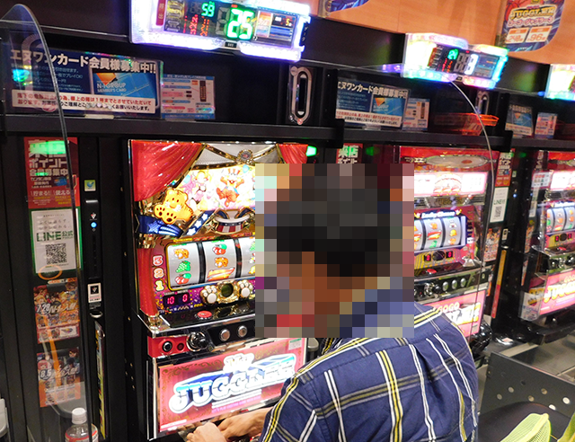 3台中2台が稼働していた「マイジャグラーⅤ」の雰囲気も華やか。