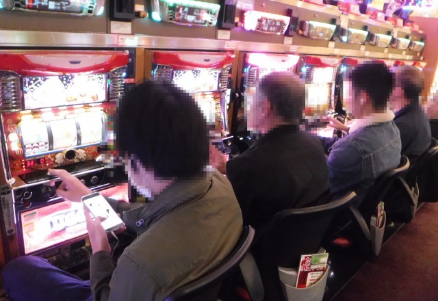 いまだに人気が衰えることがないAT機「バジリスク~甲賀忍法帖~絆」では、今後の展開に期待を込めて、遊技をしているプレイヤーの姿が印象的だった。