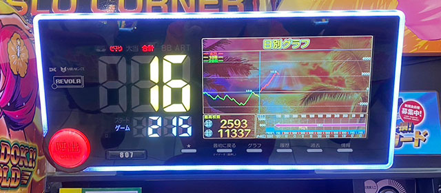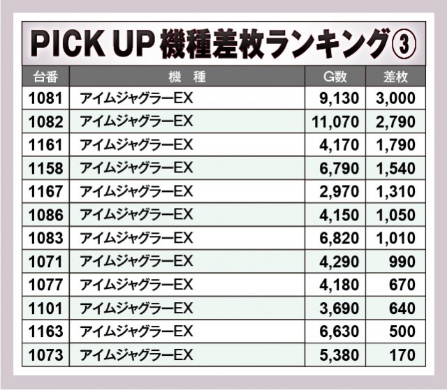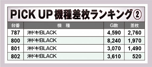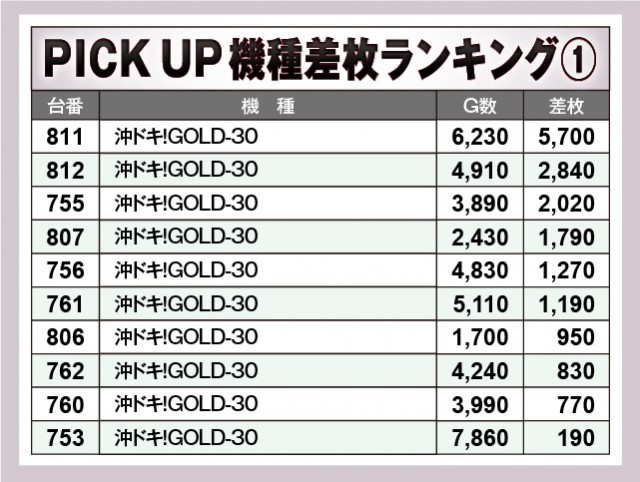 『沖ドキ!GOLD-30』『沖ドキ!BLACK』『アイムジャグラーEX』の3機種は、回転数と差枚数が比例するような展開を披露していたのが印象的だ。いずれもまとまった出玉を獲得する様子が見られ、特に5,000OVERという熱気を放った『沖ドキ!GOLD-30』の活躍は見逃せない。看板機種として奮闘する同機種は、今後も要注目と言えるだろう。