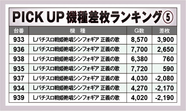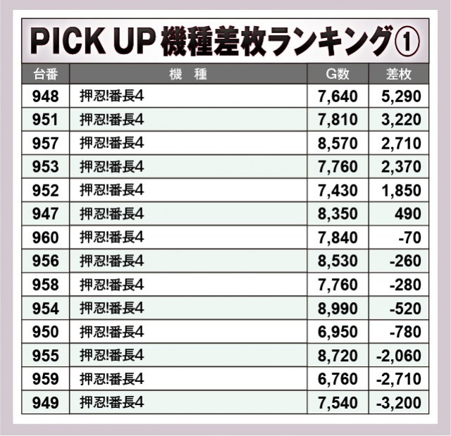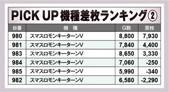 ※差枚数順に掲載しています。