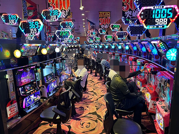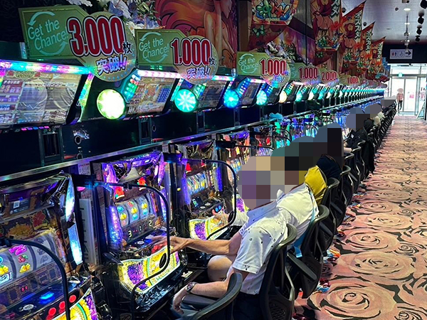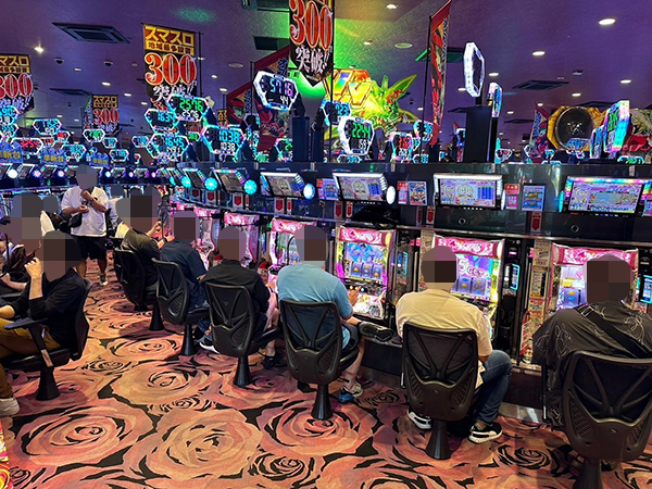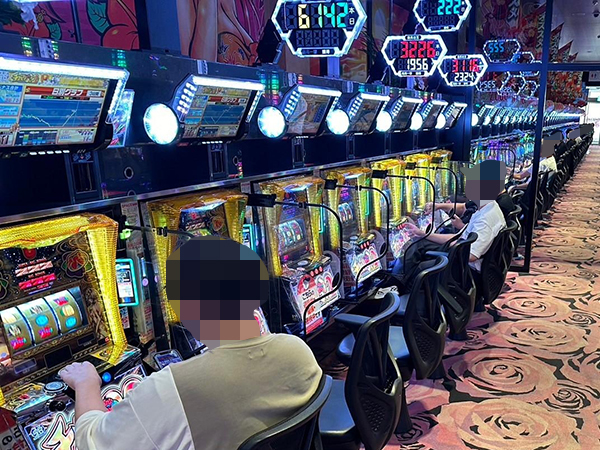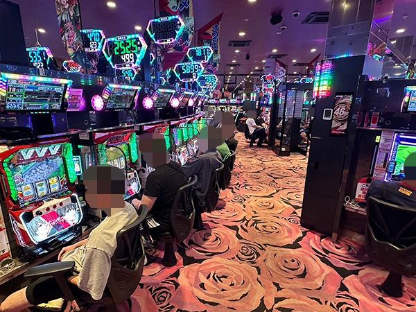 1000円/176枚パチスロも全体的に高稼働。空き台が見当たらないほどの盛況ぶりだった。