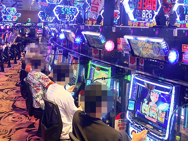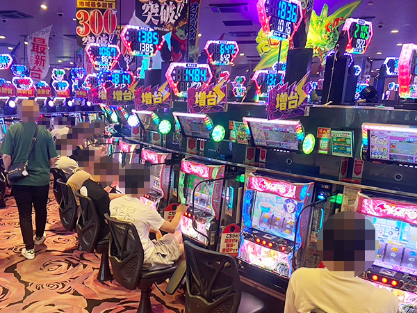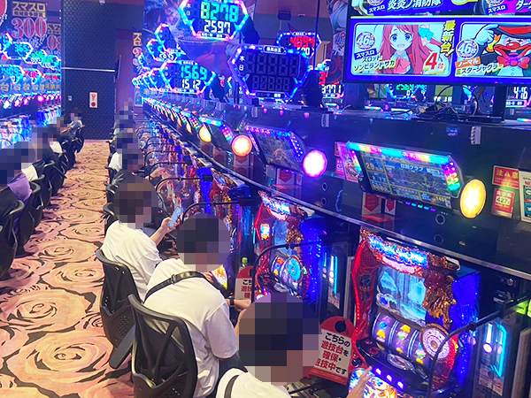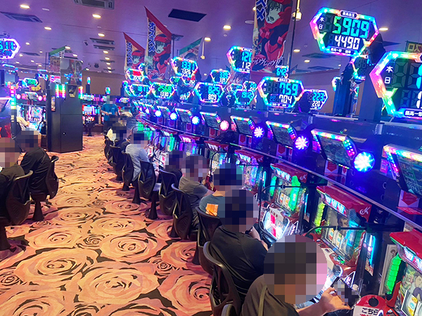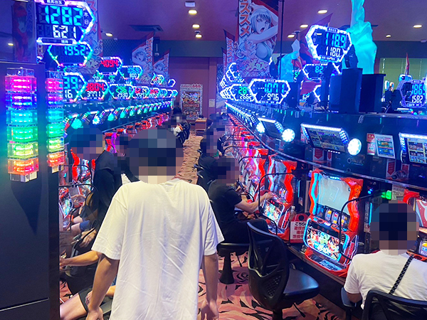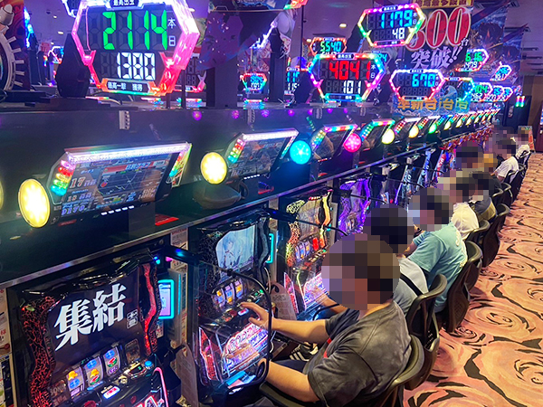1000円/176枚パチスロも全体的に高稼働。空き台が見当たらないほどの盛況ぶりだった。