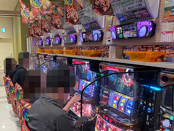 17時ごろの2.5円パチンコでは「eフィーバー機動戦士ガンダムユニコーン 再来-白き一角獣と黒き獅子-」や「e花の慶次〜傾奇一転」、「P北斗の拳 強敵 LT」で機種のポテンシャルをフルに活かすプレイヤーを確認している。
