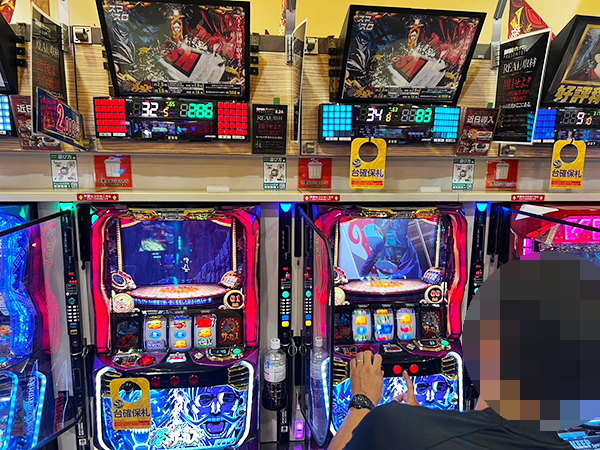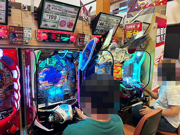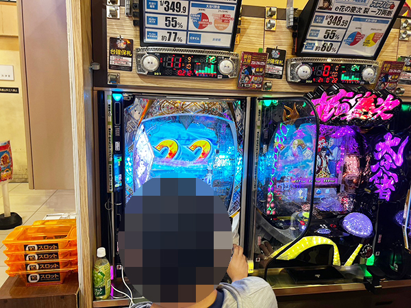 16時ごろの2.222円パチンコを見渡すと、「e Re:ゼロから始める異世界生活 season2」や「P アズールレーン THE ANIMATION 異次元トリガー」でプレイヤーたちが華麗なパフォーマンスを披露。それぞれ納得の遊技ができていたことを確認している。