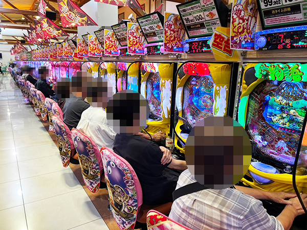 100円/90玉パチンコでは、海物語シリーズを中心に盛り上がりが大きく、シマ全体にプレイヤーの熱気が感じられた。