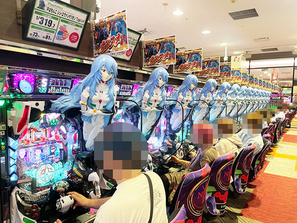 14時ごろの4円パチンコを見ると「e北斗の拳10」や「ぱちんこ シン・エヴァンゲリオン Type レイ」、「新世紀エヴァンゲリオン〜未来への咆哮〜」が盛況の様子。華麗なパフォーマンスを披露するプレイヤーを多数目撃している。