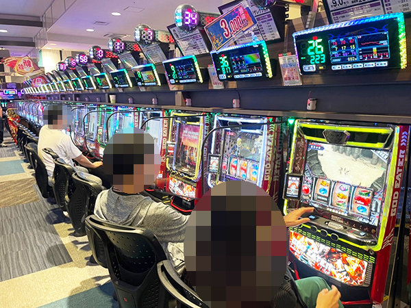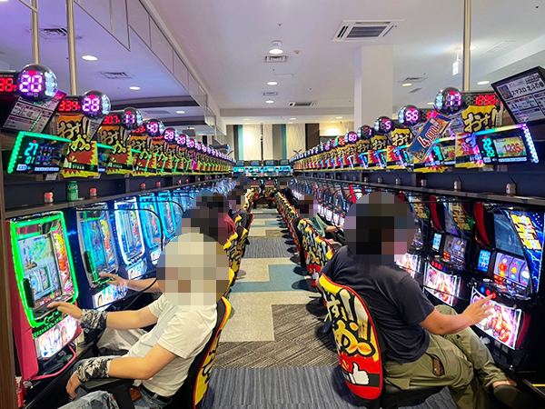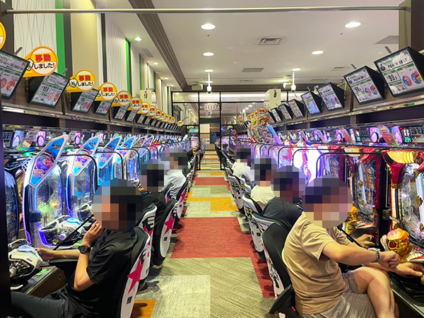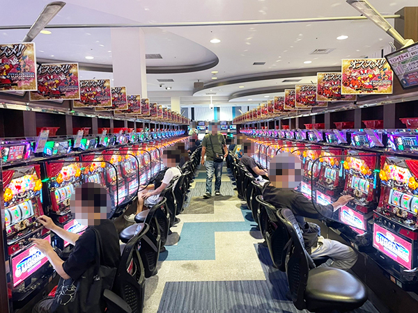取材時は既に多くのプレイヤーであふれており、パチンコ・パチスロを問わず楽しげな表情でいっぱいだった。