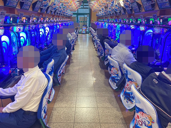 14時ごろの4円パチンコでは「P大海物語5」や「eフィーバーからくりサーカス2 魔王ver.」が人気で、プレイヤーの嬉しそうな表情を多数確認している。