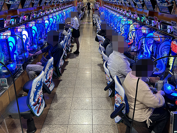 17時ごろの4円パチンコでは「P大海物語5」や「e北斗の拳10」、「e 乃木坂46 Ⅱ」で好調なプレイヤーが多数見受けられ、時折見せる嬉しそうな表情が印象に残っている。