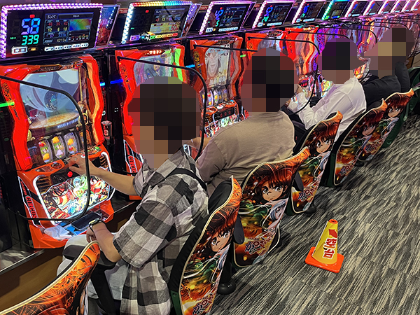 「パチスロ からくりサーカス」や「Lパチスロ戦姫絶唱シンフォギア 正義の歌」、「スマスロ ゴッドイーター リザレクション」でも、機種の魅力を堪能するプレイヤーを確認。シマ中に明るい雰囲気が広がっていた。