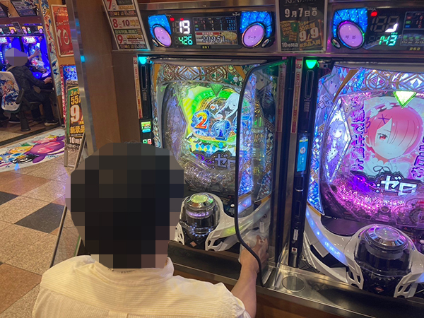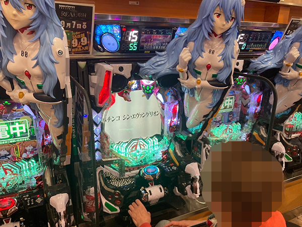 14時ごろの4円パチンコを見てみると「e Re:ゼロから始める異世界生活 season2」や「ぱちんこ シン・エヴァンゲリオン Type レイ」が好評。プレイヤーの嬉しそうな表情を確認している。