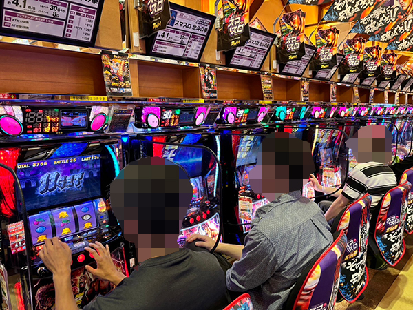 500円/89枚パチスロの稼働も高い。プレイヤーたちが楽しそうにレバーを叩く姿を目撃している。