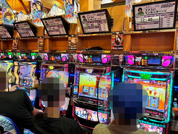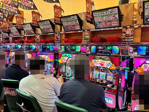 「マイジャグラーⅤ」などのジャグラーシリーズでも機種のポテンシャルをフルに活かすプレイヤーが見られ、実に華やかな光景が広がっていた。