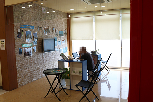 レストスペースにはテレビを用意。椅子に腰かけつつ、ゆったりくつろげることだろう。