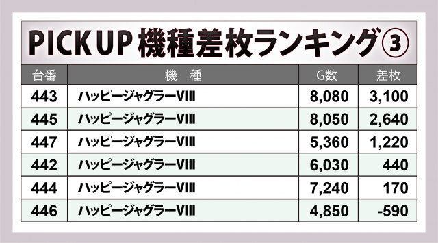 続いては高勝率および突出した差枚数で目立った4機種にスポットを当てる。